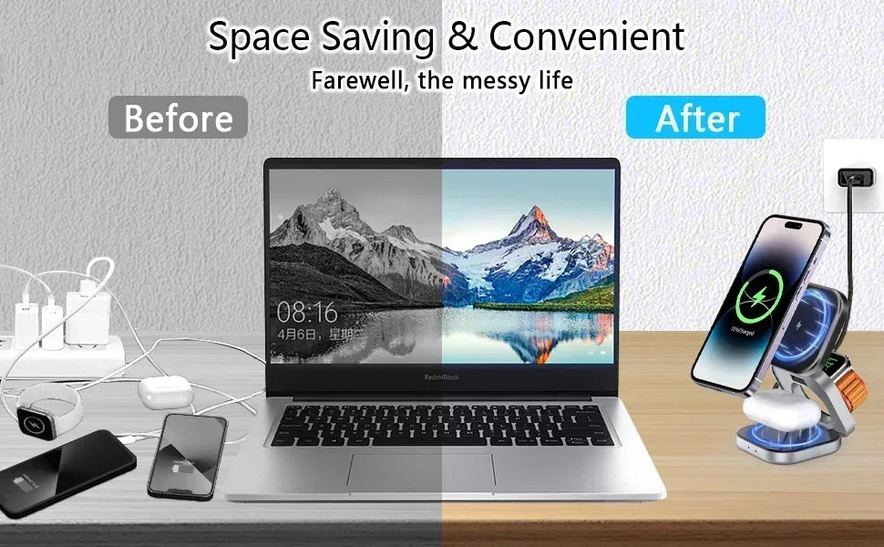 3 In 1 Magnetic Wireless Charger Stand For iPhone 16 15 14 Pro Max IWatch AirPods 3/2 Foldable Fast Charging Holder Dock Station