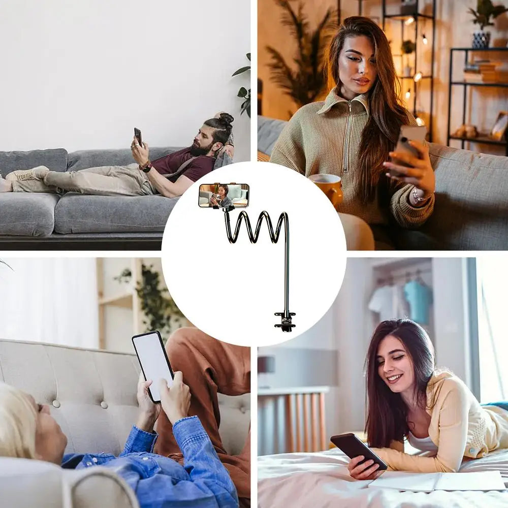 Phone Holder Desk Clamp 360-degree Rotate Cell Phone Bedside Clip Fits Tablets Below 10.5 Inches Flexible Arm Streaming Bracket